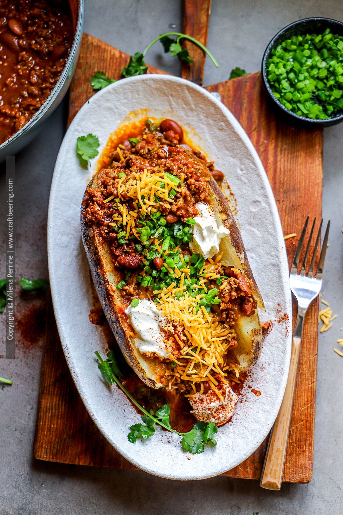 Make a chili baked potato like the one you see below for a complete dinner or enjoy chili fries or chili nachos.