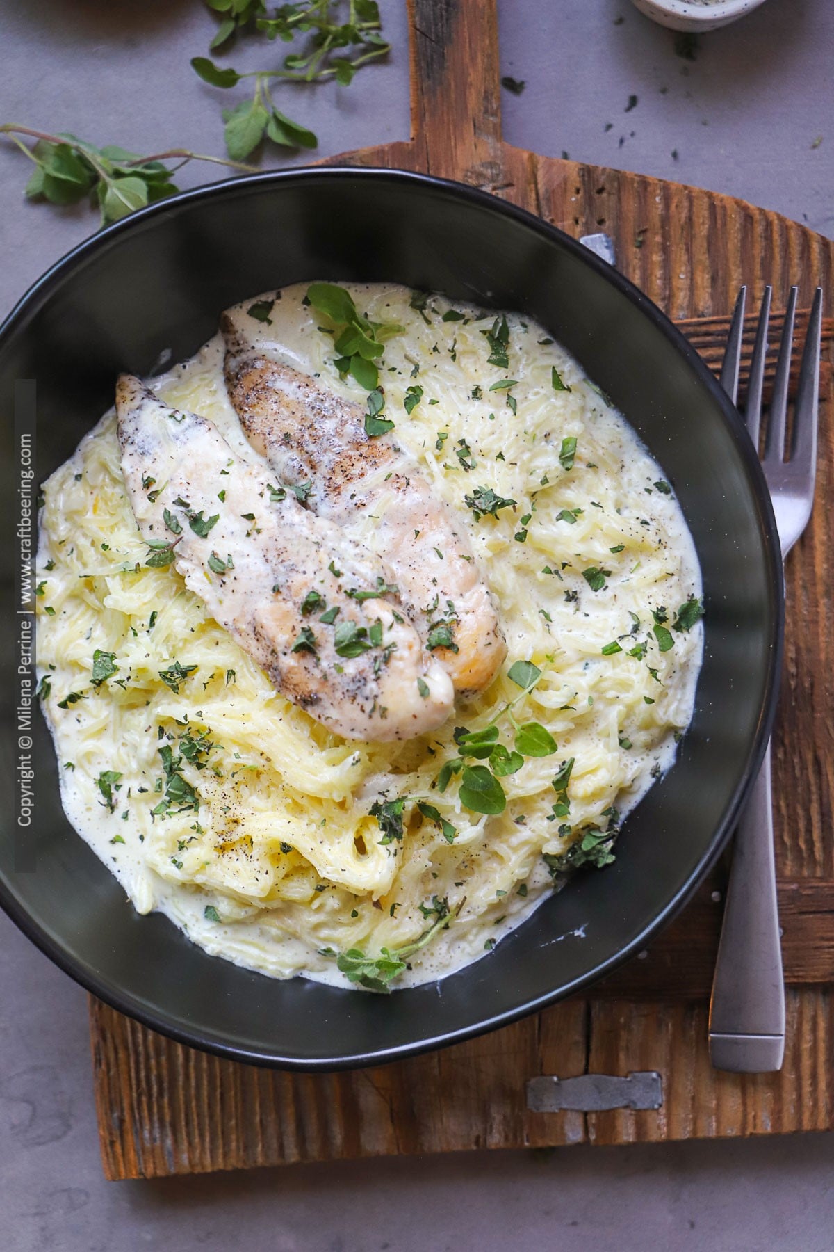 Spaghetti noodles - spaghetti squash pairs really well with creamy pasta sauces such as the garlic cream sauce shown below or other cream sauce recipes from this list.