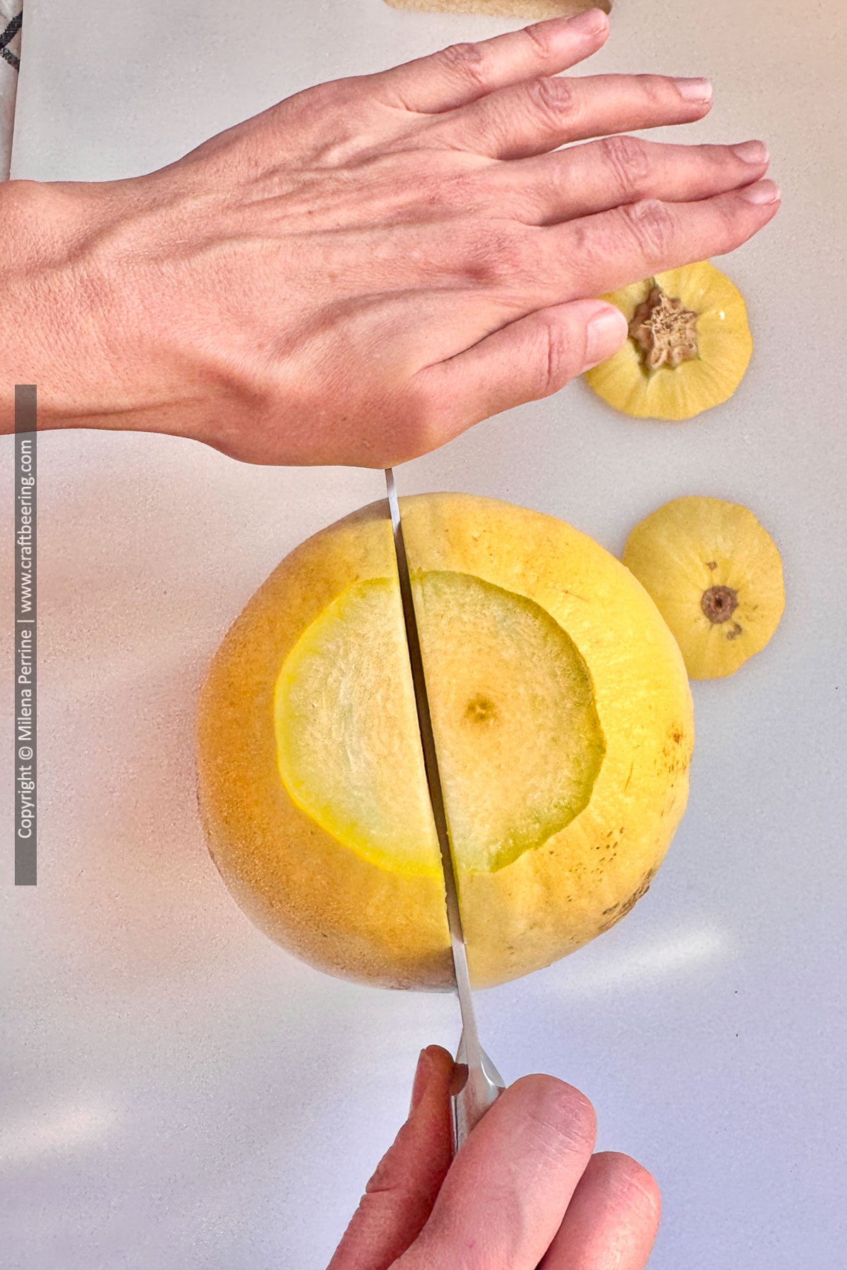 - Cut the squash lengthwise in halves, scoop out the seeds with a spoon.
