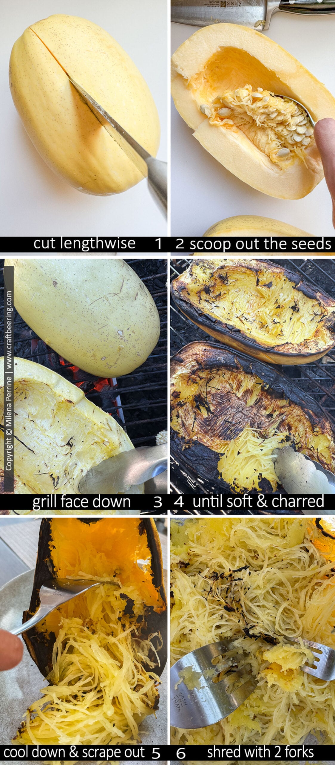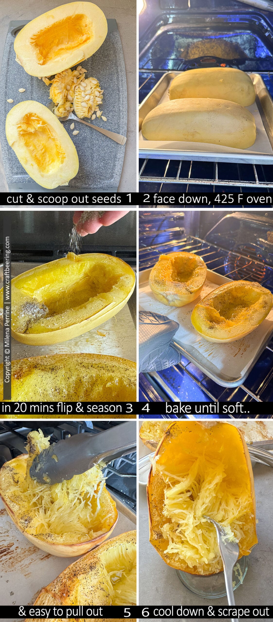 - allow the halves to cool down a bit and use a fork to scrape out the noodle shaped strands